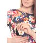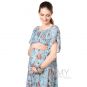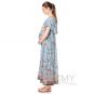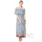 Платье-срафан с оборкой по плечам голубой/коралл/цветы